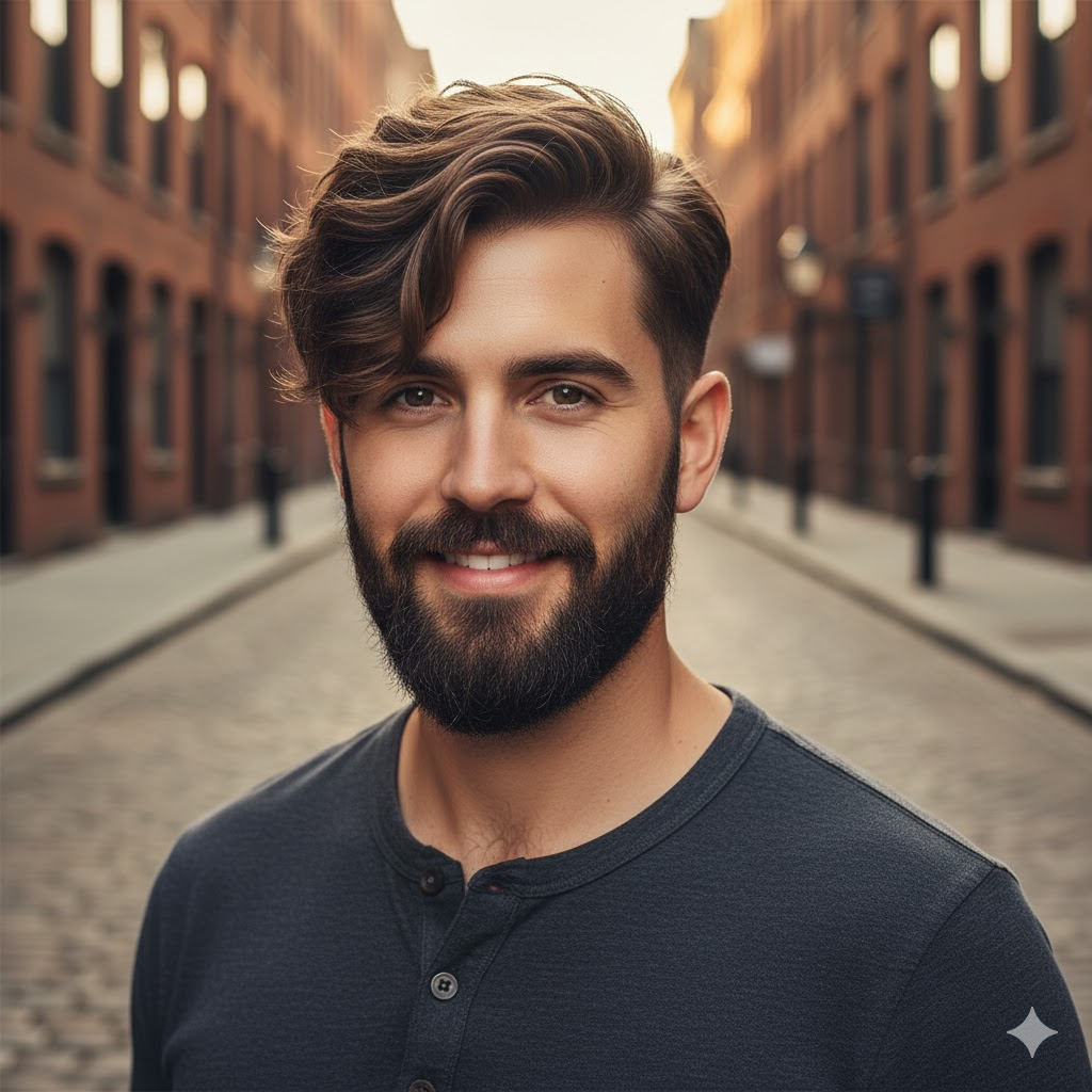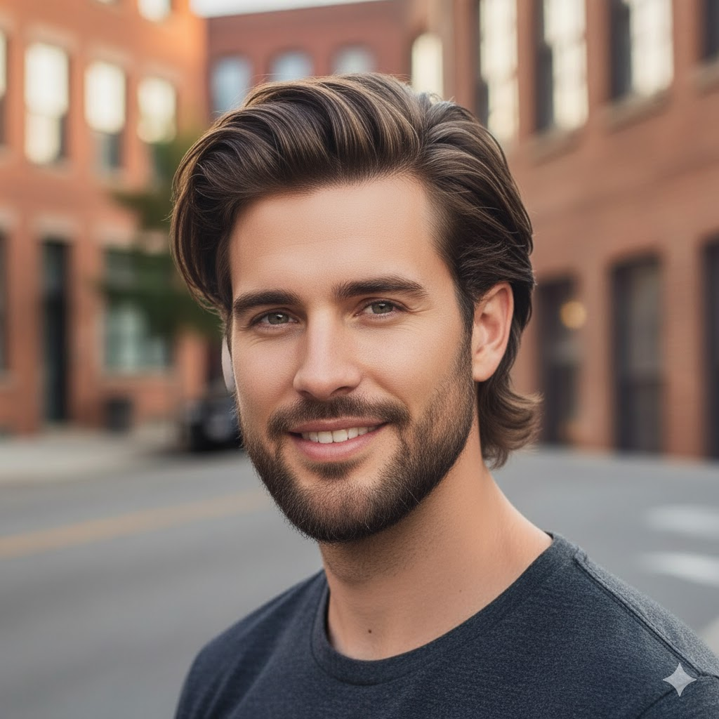 This style combines flow and structure, ideal for men who like keeping length on top. The subtle taper keeps it neat and manageable while maintaining natural movement.