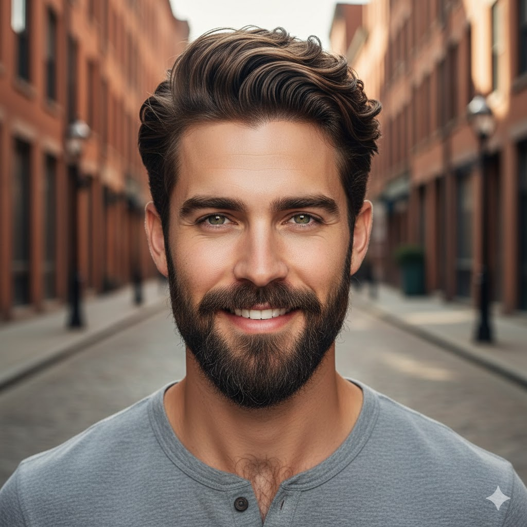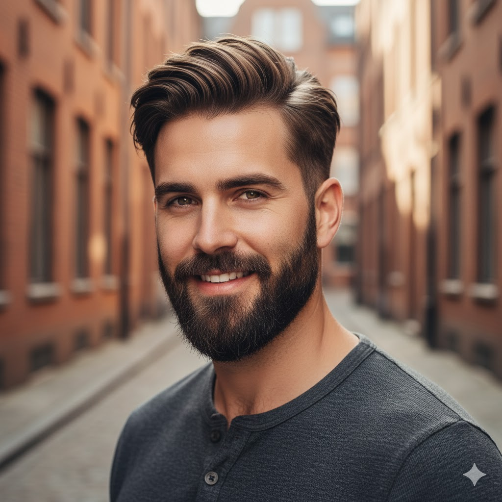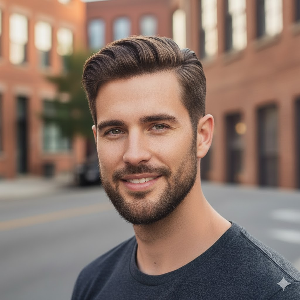 The textured comb over is a stylish choice for men who want something casual yet sharp. It combines soft texture with a structured side sweep for a relaxed, modern vibe. Pair it with a mid or low fade and use a matte product for volume and hold. A trimmed beard complements this style beautifully, giving it a bold, masculine finish.