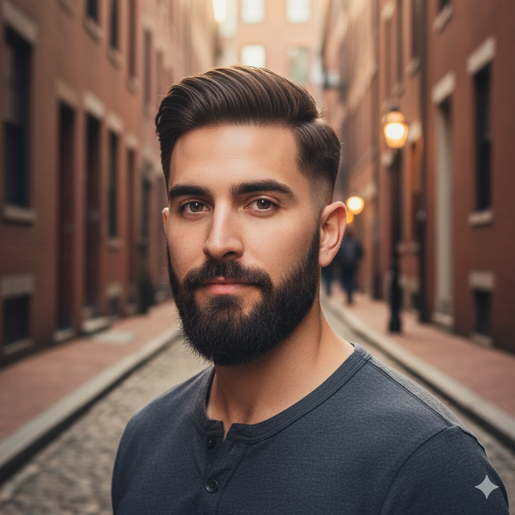 The low taper comb over combines simplicity and refinement. The low fade around the ears helps elongate the face while keeping the sides soft. It pairs well with light stubble for a confident, masculine vibe.