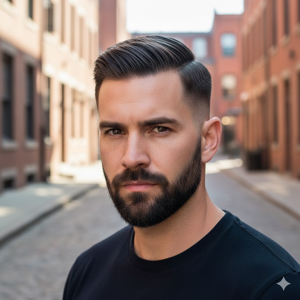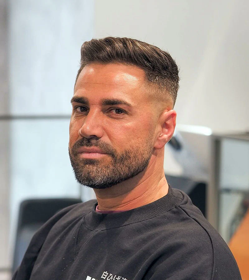 The short comb over is neat, practical, and easy to maintain. It keeps the hair about two to three inches long on top and brushed to one side for a clean, refined appearance. Add a low or mid fade for extra sharpness around the edges. This style looks equally great with a clean shave or a short beard for contrast.